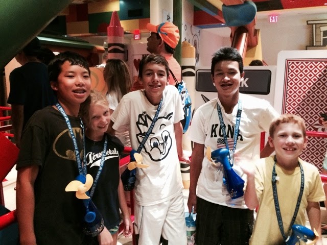 The only part of the ride the boys could see from the waiting line was the riders being shot into the dark....screaming....that's it!!